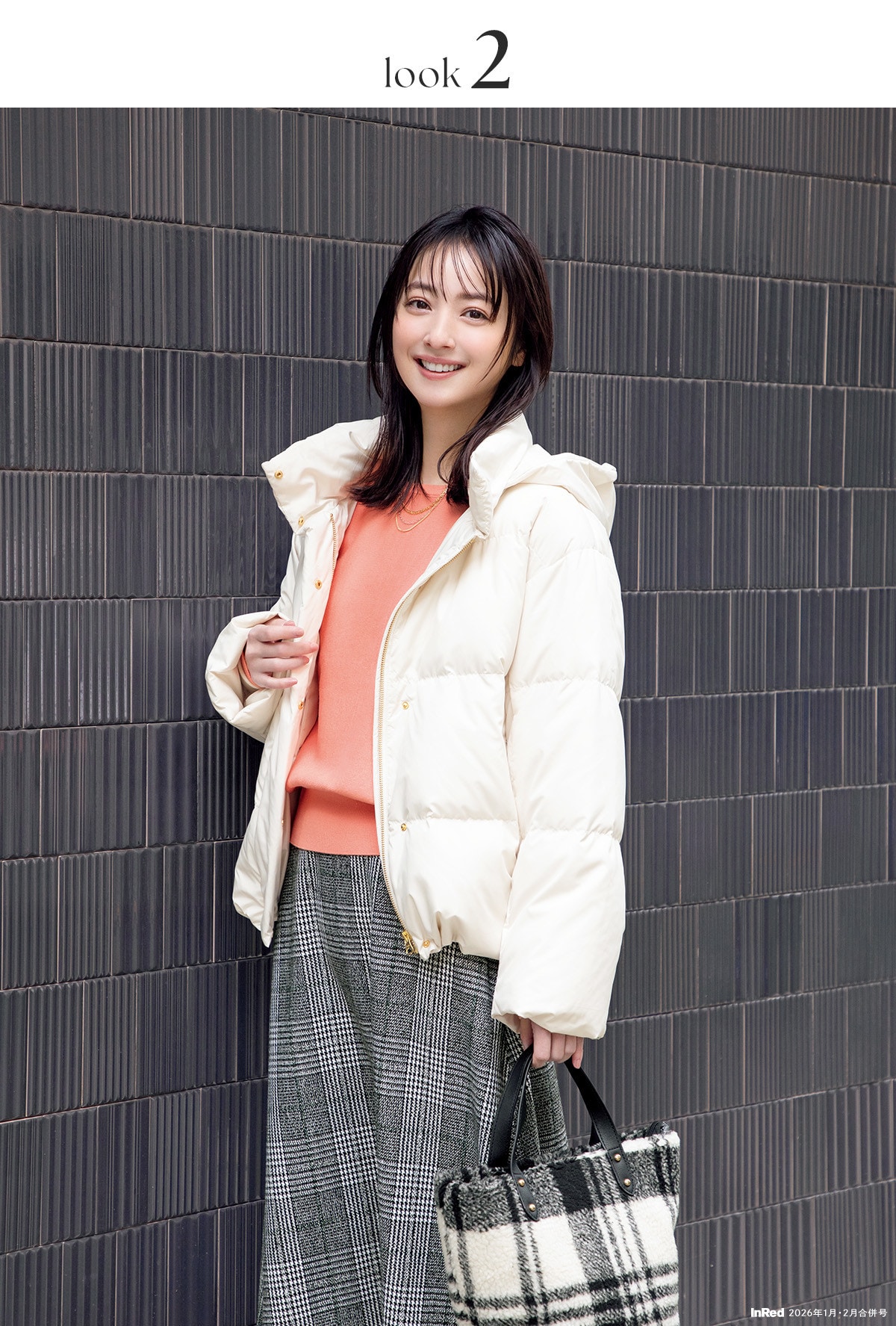 今っぽい着こなしが決まるショートダウンは、顔映えも着映えも抜群の白をセレクト。ダークカラーの着こなしが増える冬こそ、着こなしも気分も上がるキーピースに。裾をひもで絞るとふっくらしたシルエットになり、優しい雰囲気で着こなせます。