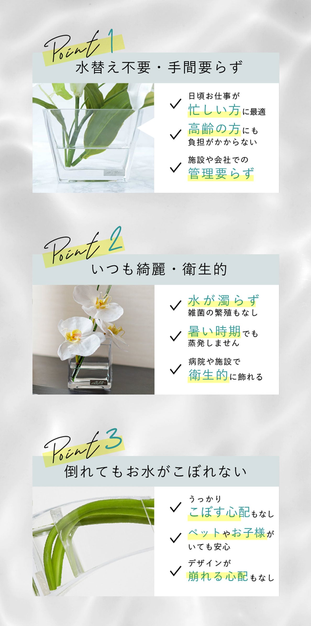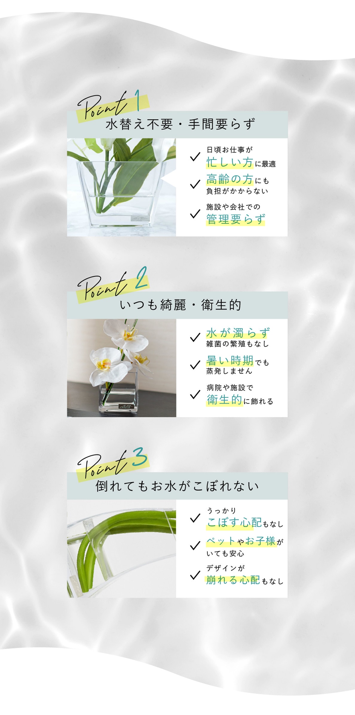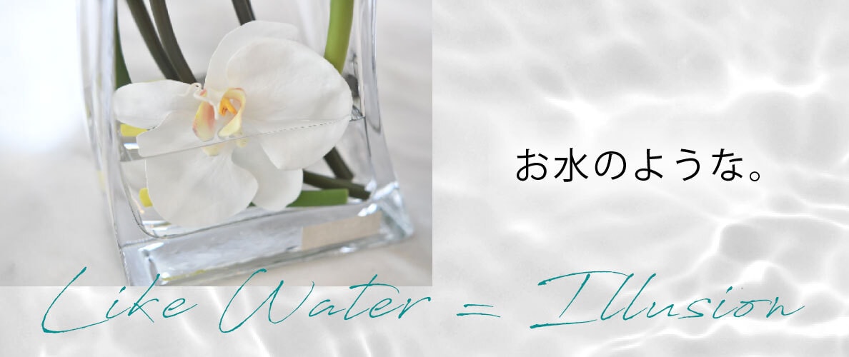 花器の中にシリコン樹脂を注ぎ、本物のお水が入っているかのよう。