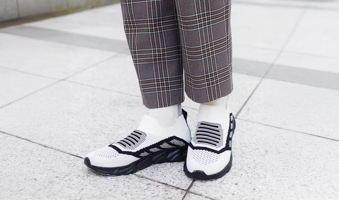 シックなモノトーンで表現した配色デザインが魅力的なニットスニーカー。