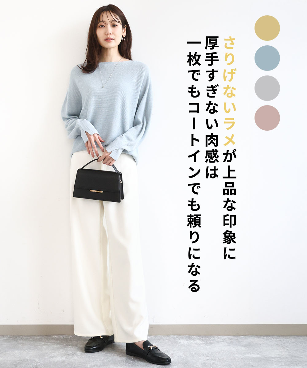 さりげないラメが上品な印象に厚手すぎない肉感は一枚でもコートインでも頼りになる!