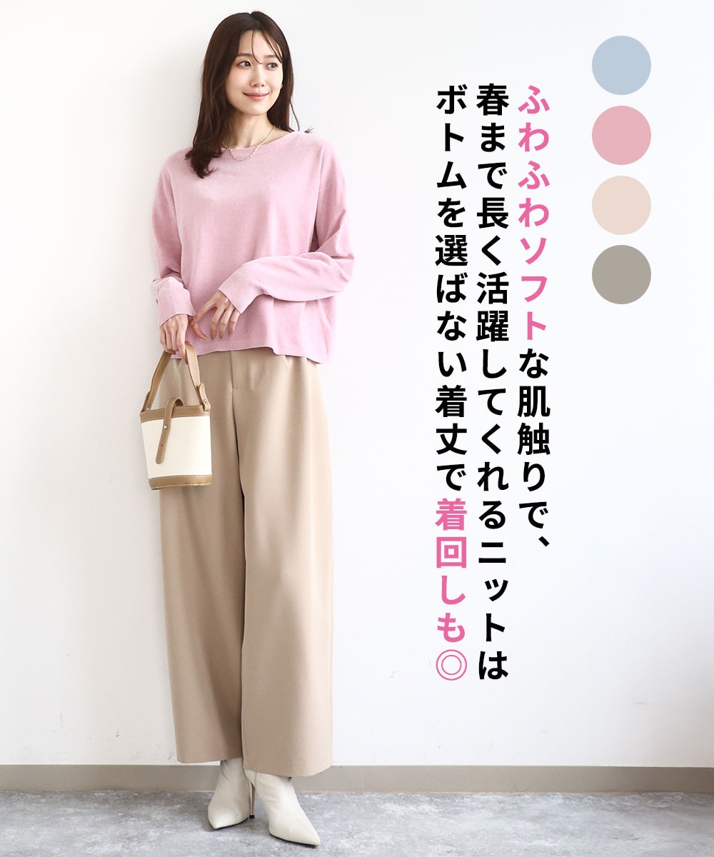 ふわふわソフトな肌触りで、春まで長く活躍してくれるニットはボトムを選ばない着丈で着回しも◎