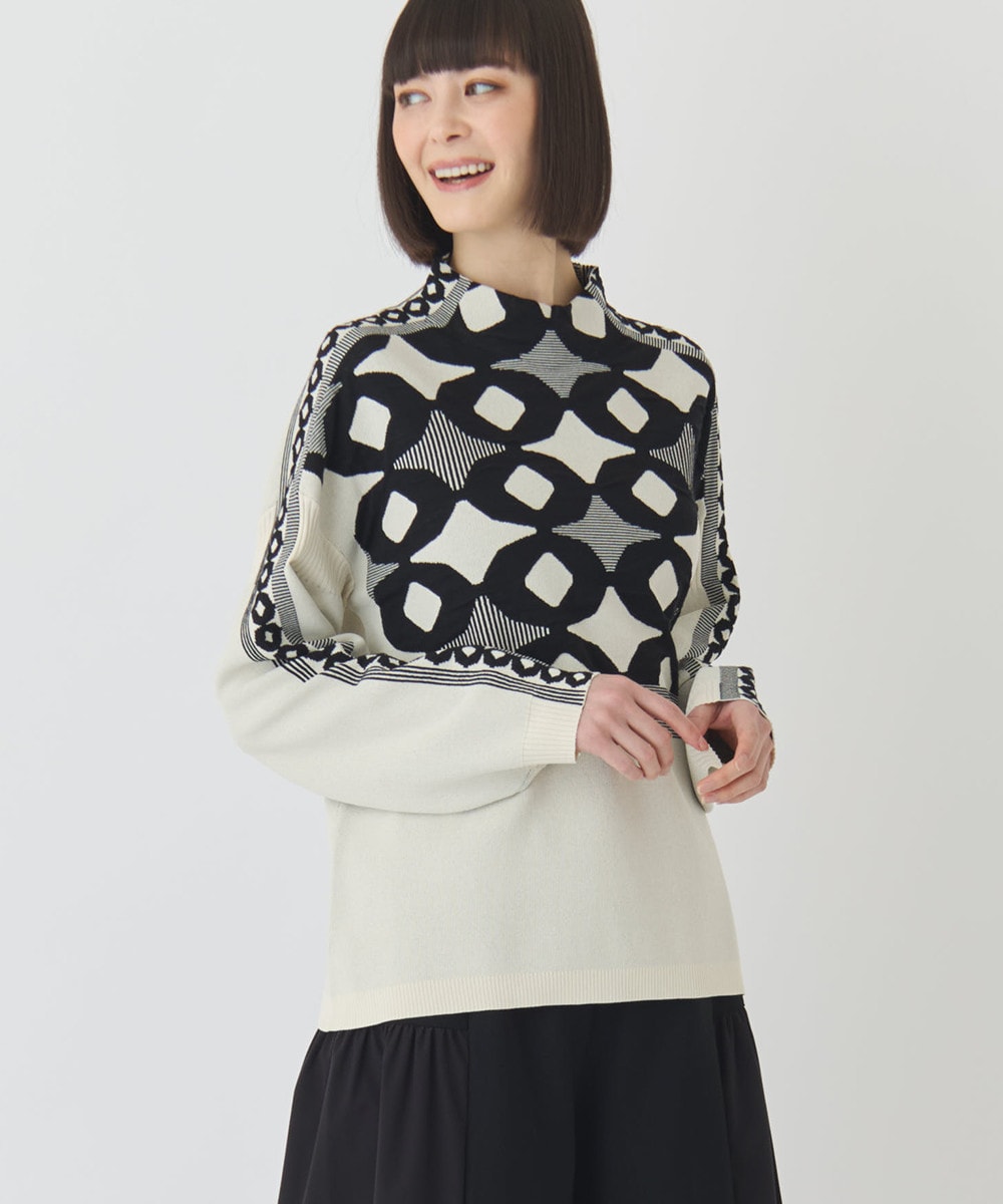 ジャカード×インターシャ幾何柄チュニック