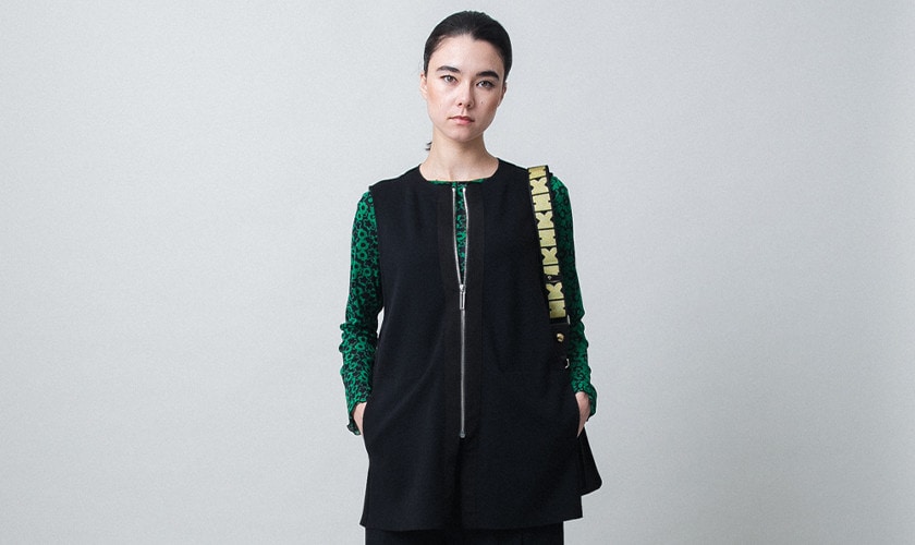 やや長めの丈感で体型カバーを叶えつつ、ジッパーを締めればきれいめなスタイリングに。