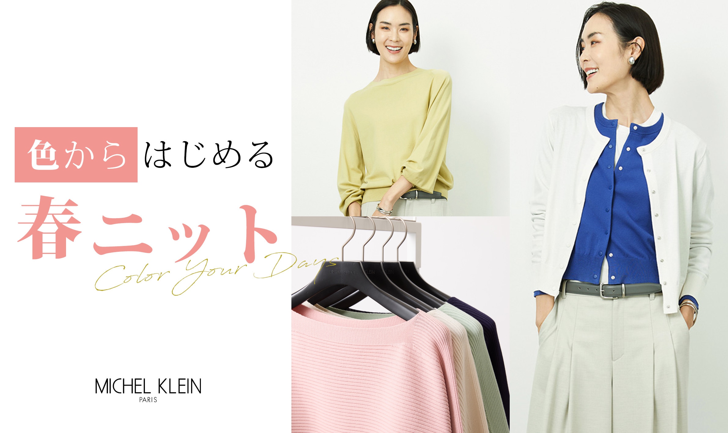 春らしいきれい色ニットを取り入れるだけで、いつものスタイルがぐっと新鮮に。