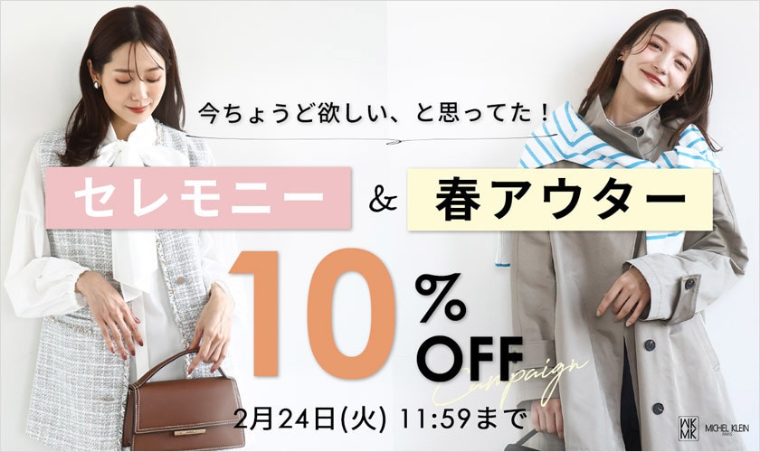 春のセレモニーとアウターアイテムが今だけ限定のお買い得タイムセールを開催中です。