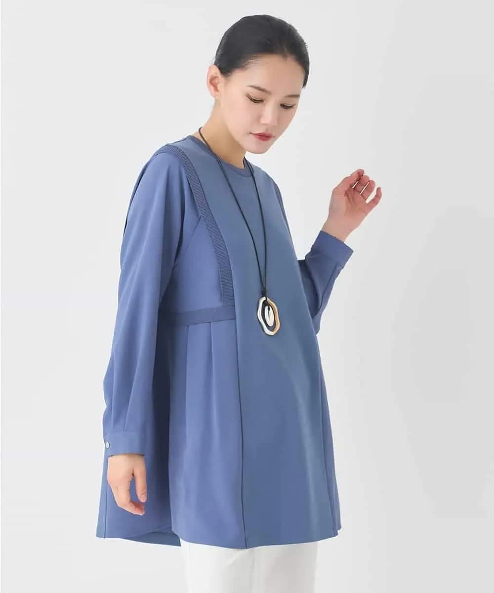 【大きいサイズ】異素材切り替えチュニックプルオーバー /洗える