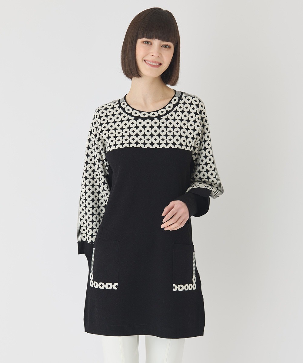 【大きいサイズ】ジャカード×インターシャ幾何柄チュニック