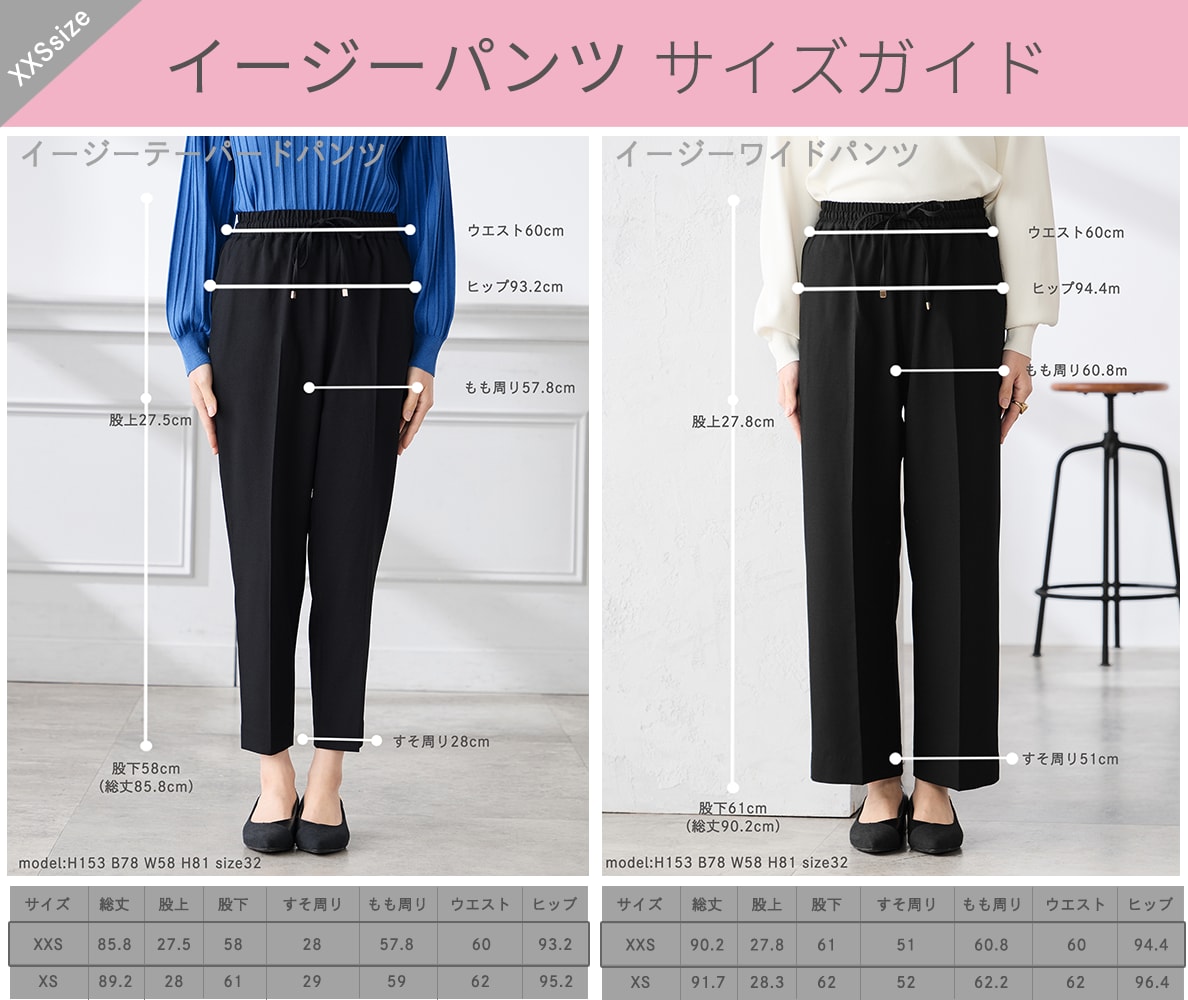 a.v.vレギュラーサイズで支持率の高い“スッキリ見え”&“イージー”パンツシリーズを、XXSにリサイズ。
