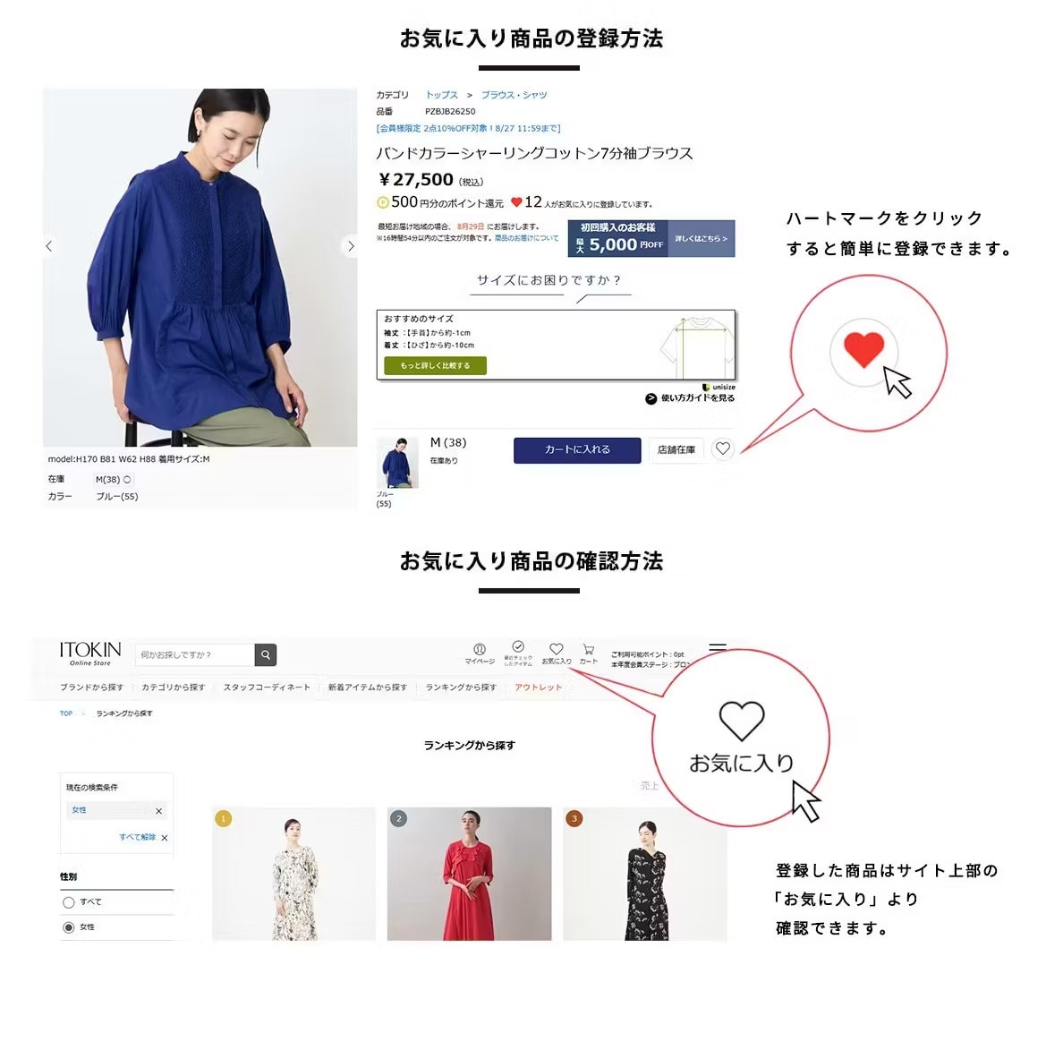 会員登録をしていただくと、お気に入り登録機能をはじめ、イトキンオンラインストアの便利でお得なサービスをご利用いただけます。