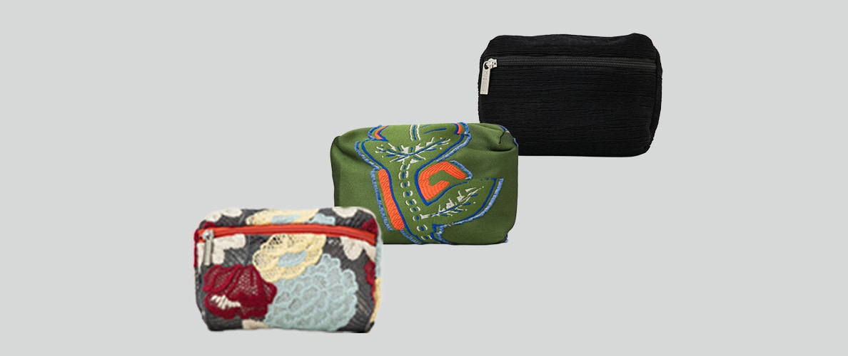 ヒロココシノのオリジナルのテキスタイルを使用した特別感のあるポーチ。
