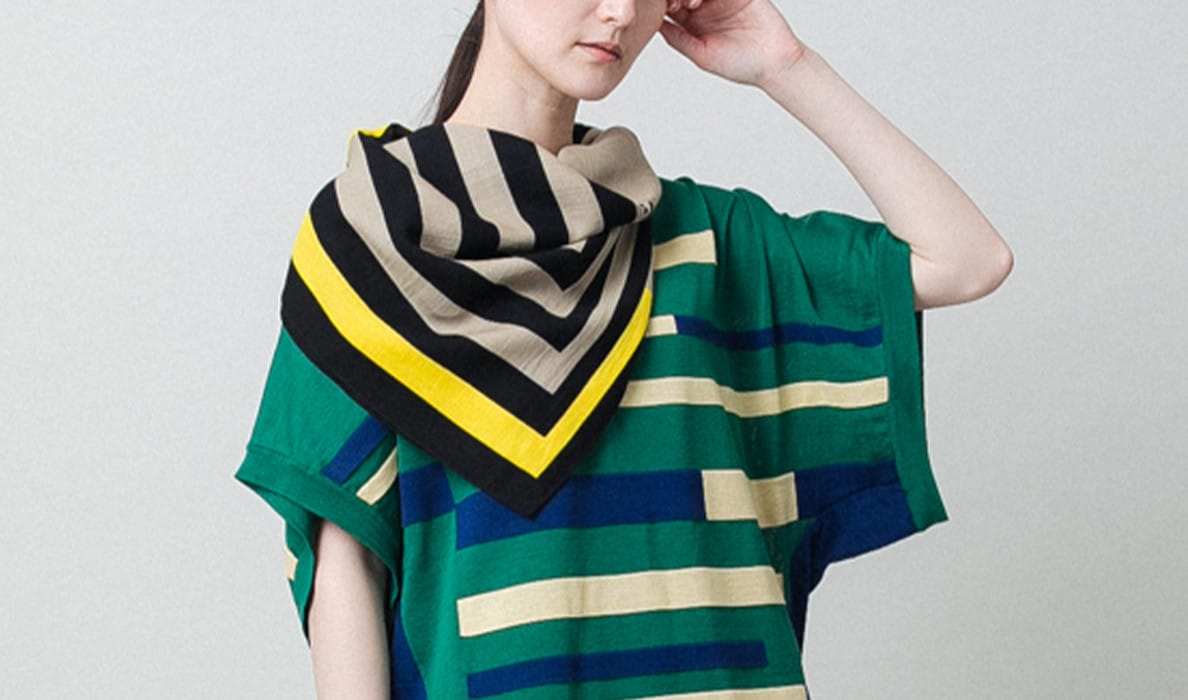 スクエアボーダースカーフ /洗える