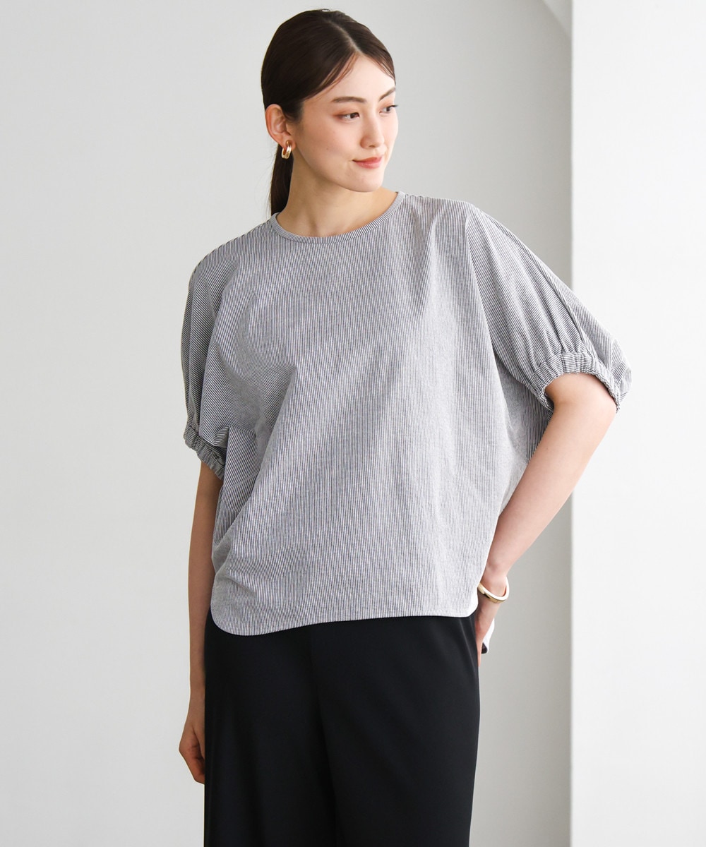 [接触冷感]サッカードルマンスリーブカットソー