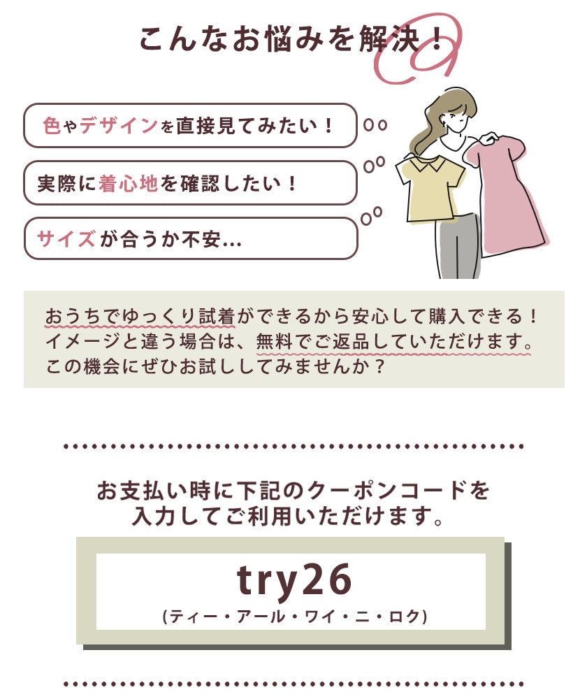 【クーポンコード】try26 (ティー・アール・ワイ・ニ・ロク)