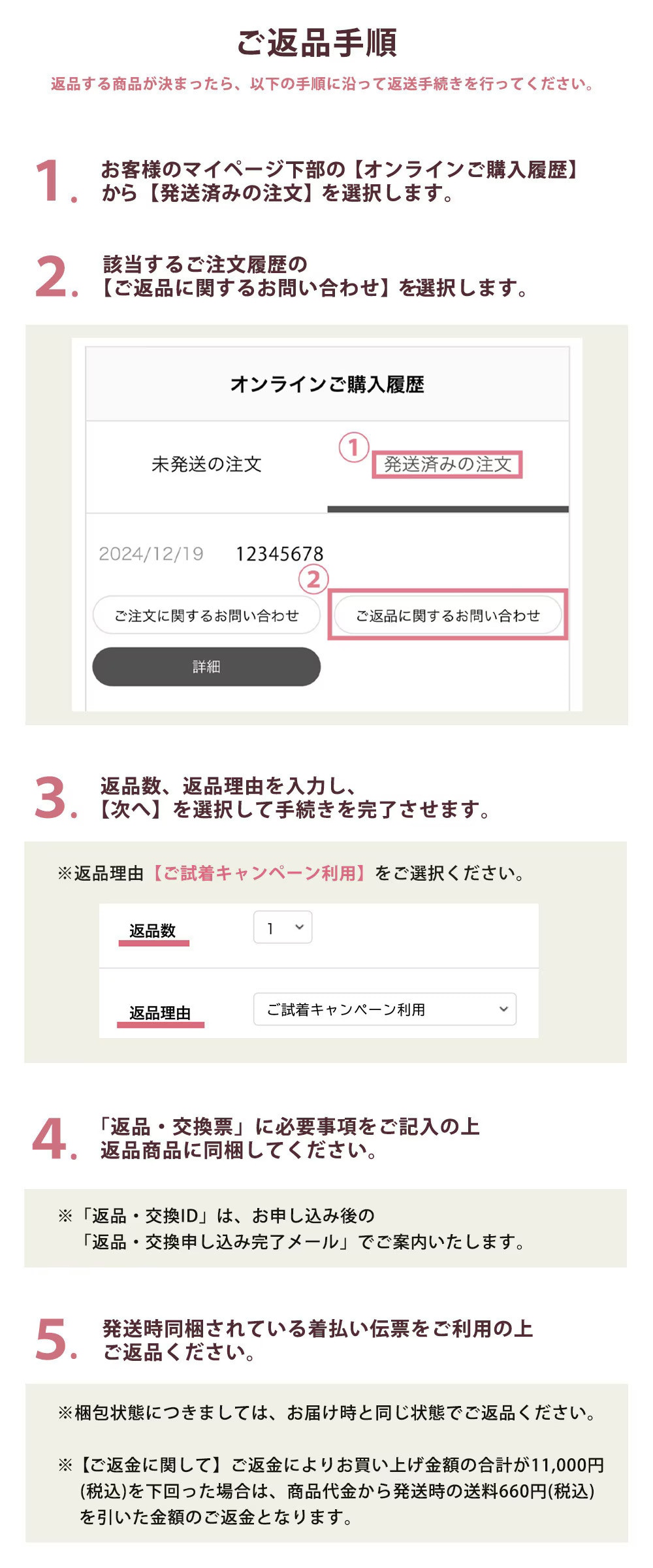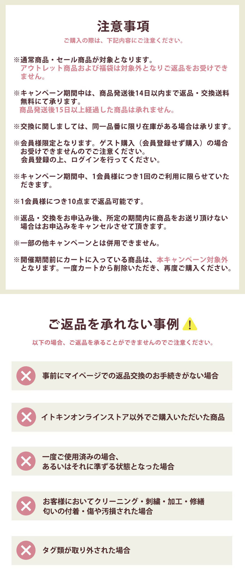 期間中に対象商品をご購入いただきますと、ご返品・ご交換時の送料が無料となります。