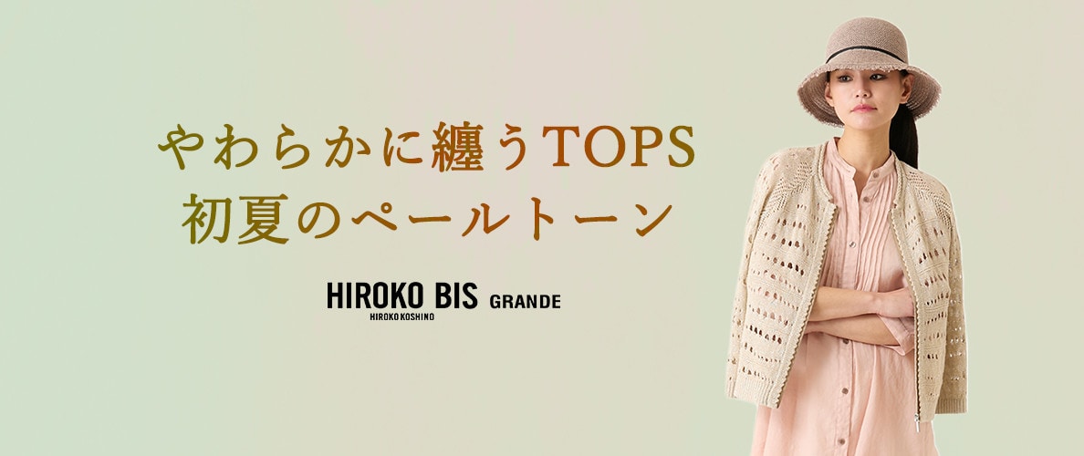 ヒロコビスの大きいサイズです。ヒロココシノのもつエレガントマインドを表現し、都会的にソフィスティケートされた単品コーディネートのウエアリングを提案する、ヒロココシノのディフュージョンブランド。
