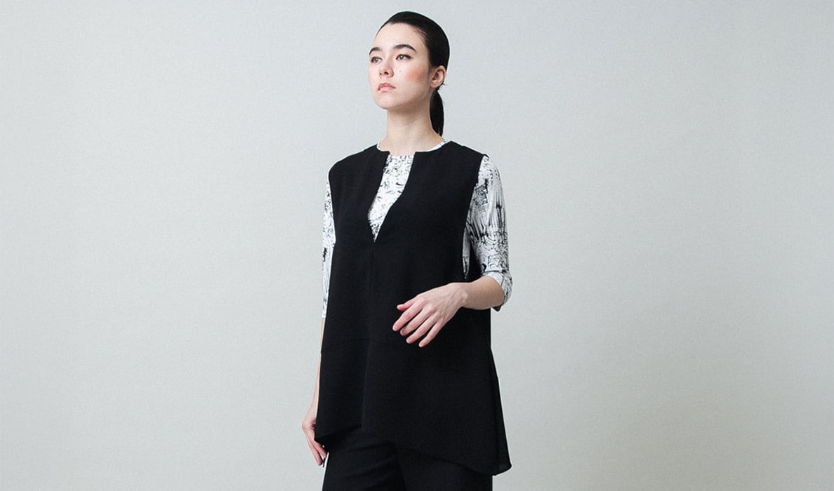 深めのフロントVカットやサイドスリットで、シルエットをより魅力的に魅せてくれるアイテムです。