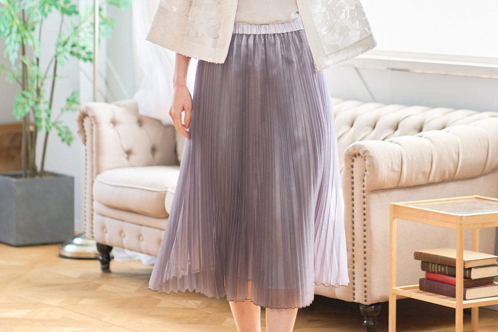 涼やかでトレンド感をプラスできるシアートップスは初夏のお出かけのマストアイテム。ほどよい光沢がある素材は、お顔まわりを明るくさせ、思わず見返したくなるような旅の思い出写真が残せること間違いなし。