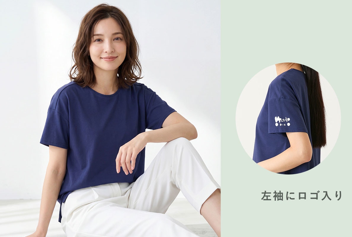 今年のTシャツは、定番のクールネックに左袖にロゴがプリントされたシンプルながらおしゃれな一枚。