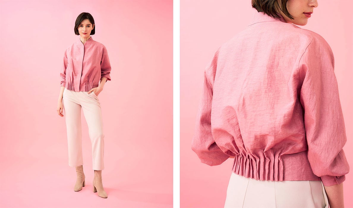 裾や袖口にタックを施し、フォルムを出したブルゾン。