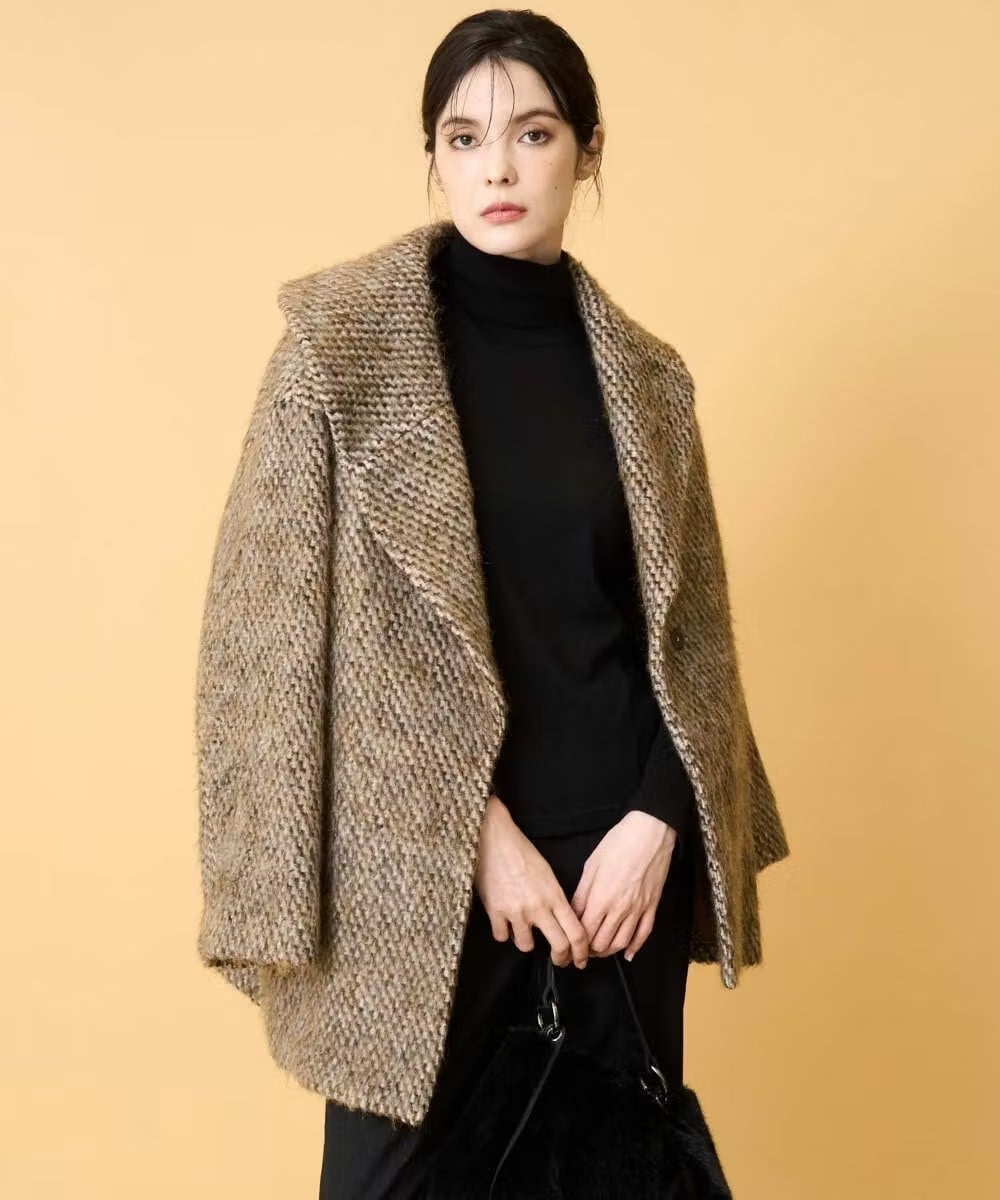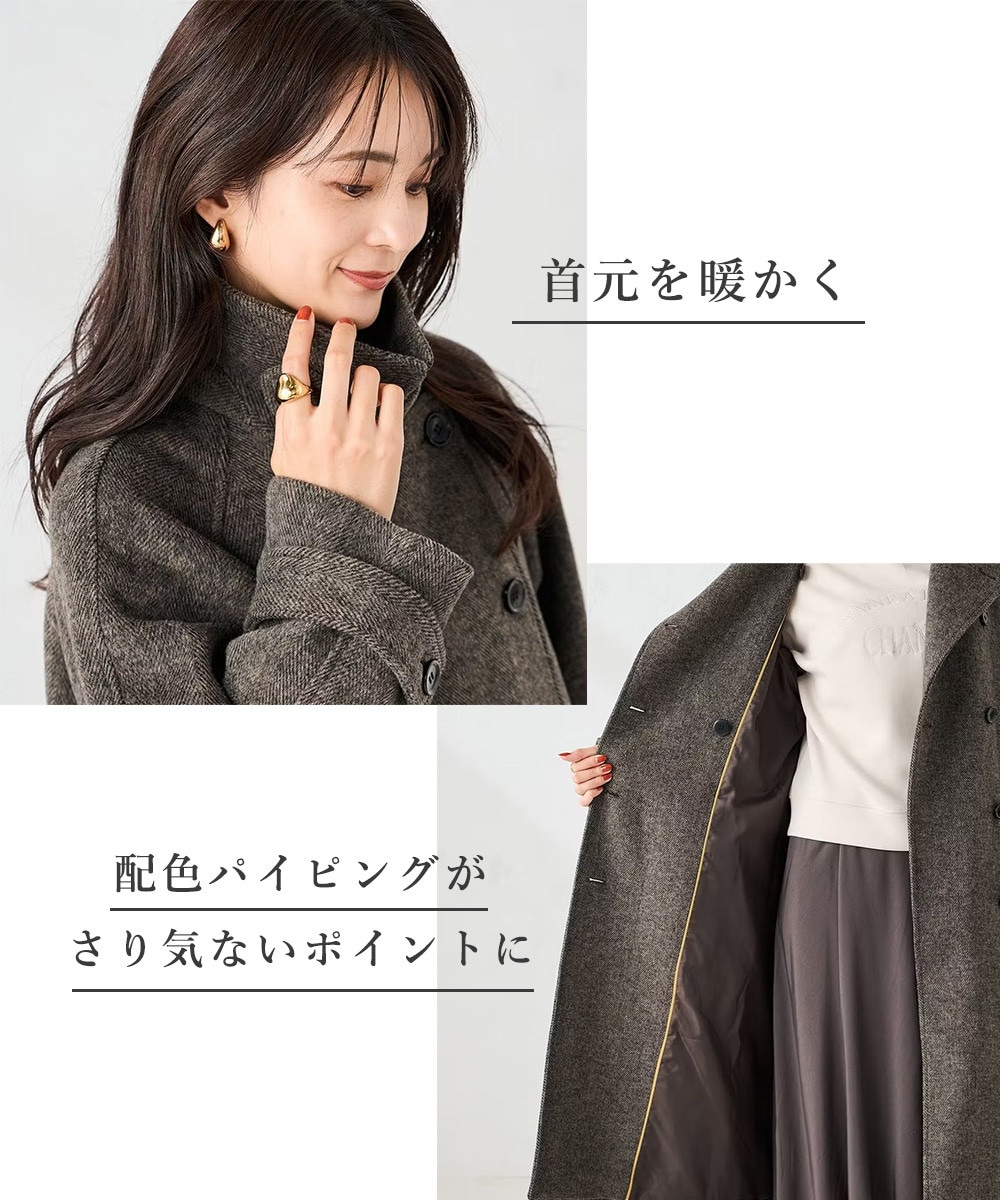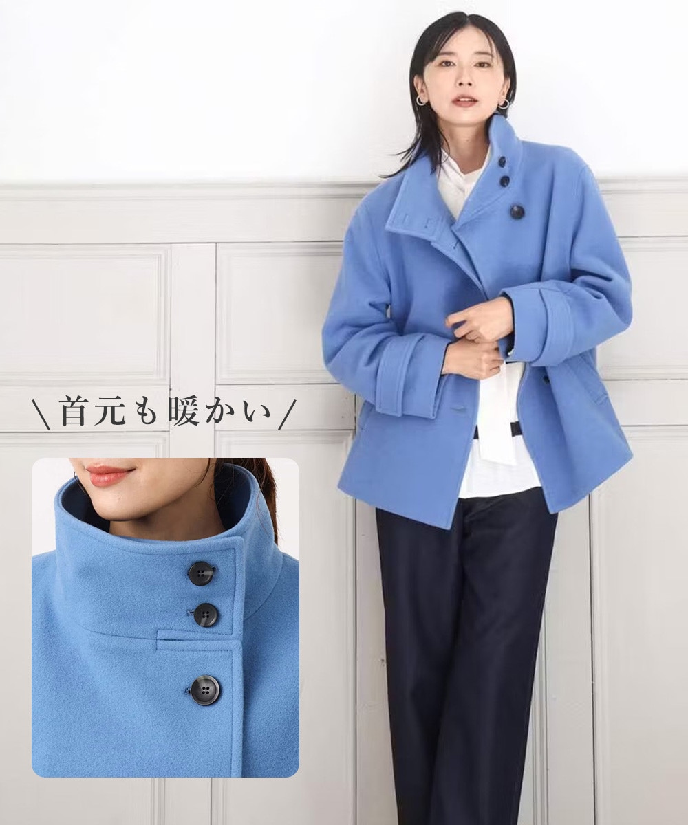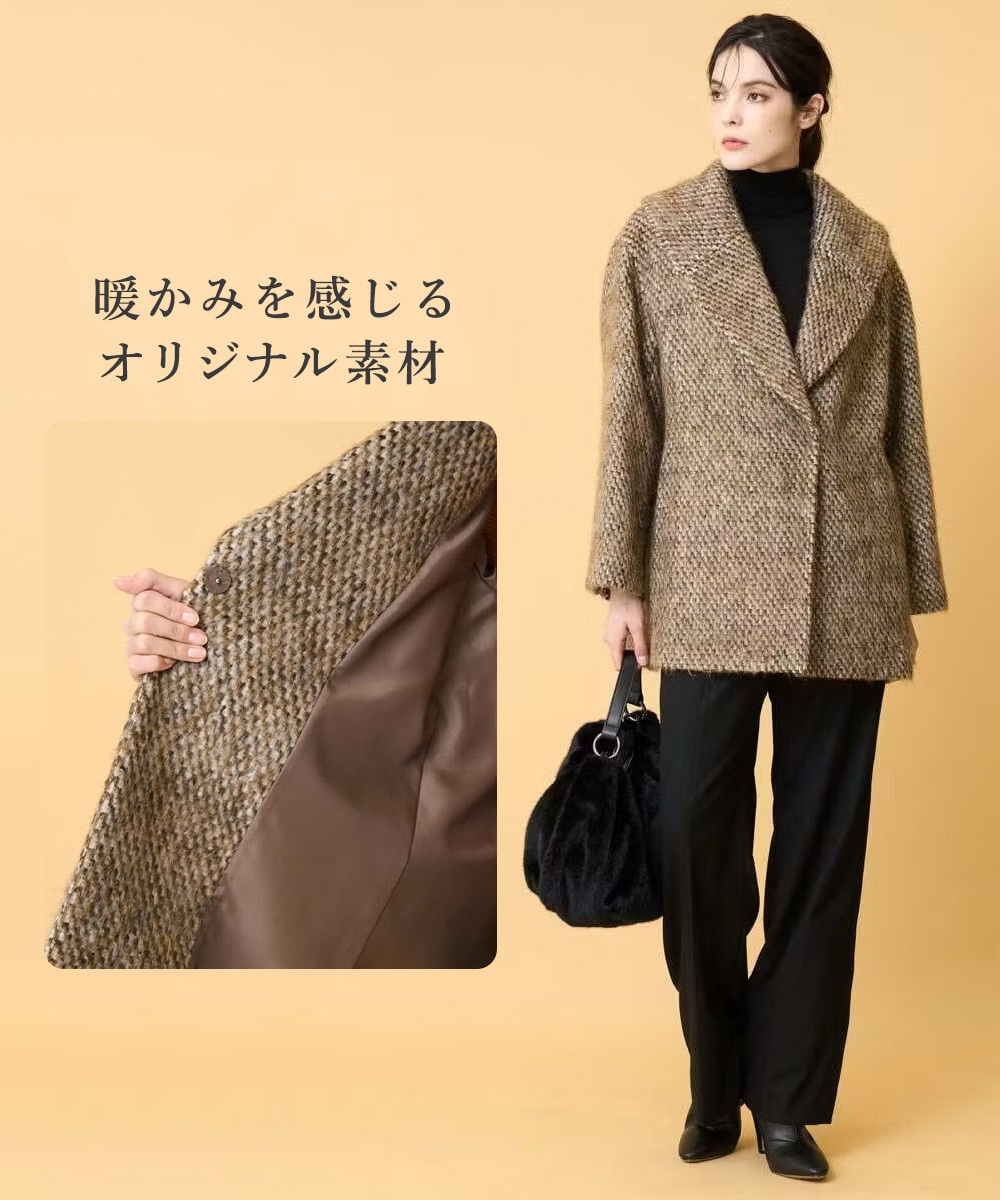 羽織った瞬間に軽さと暖かさを実感できる、エアリアルウール素材の一着。
