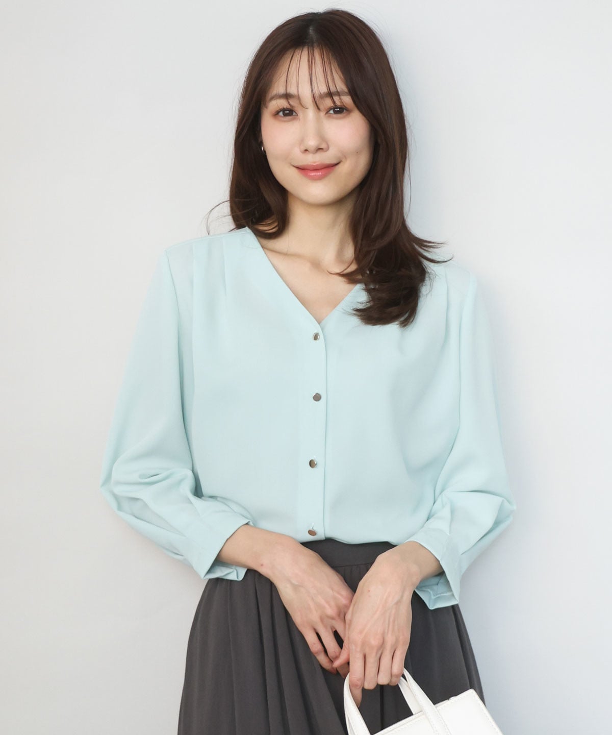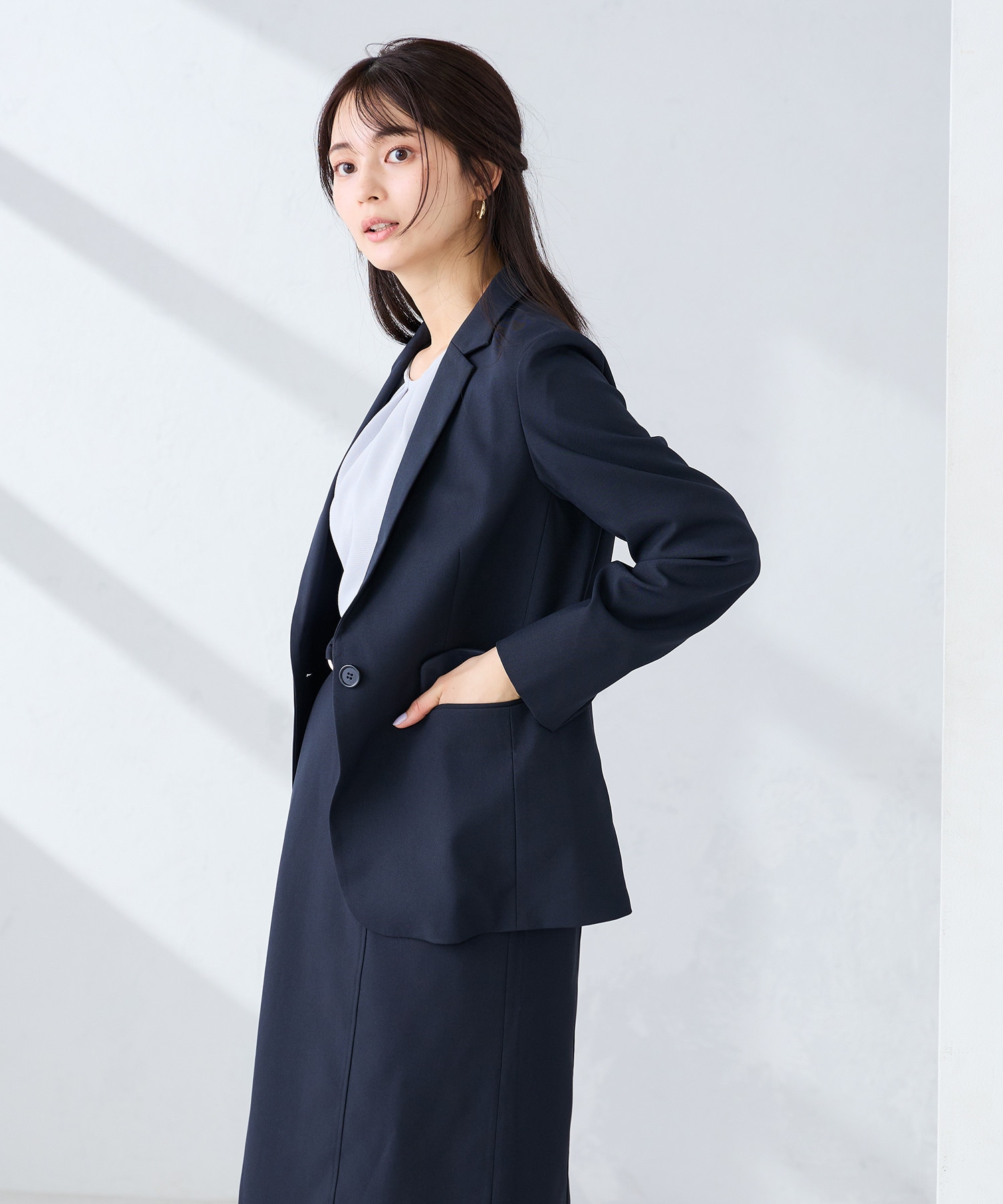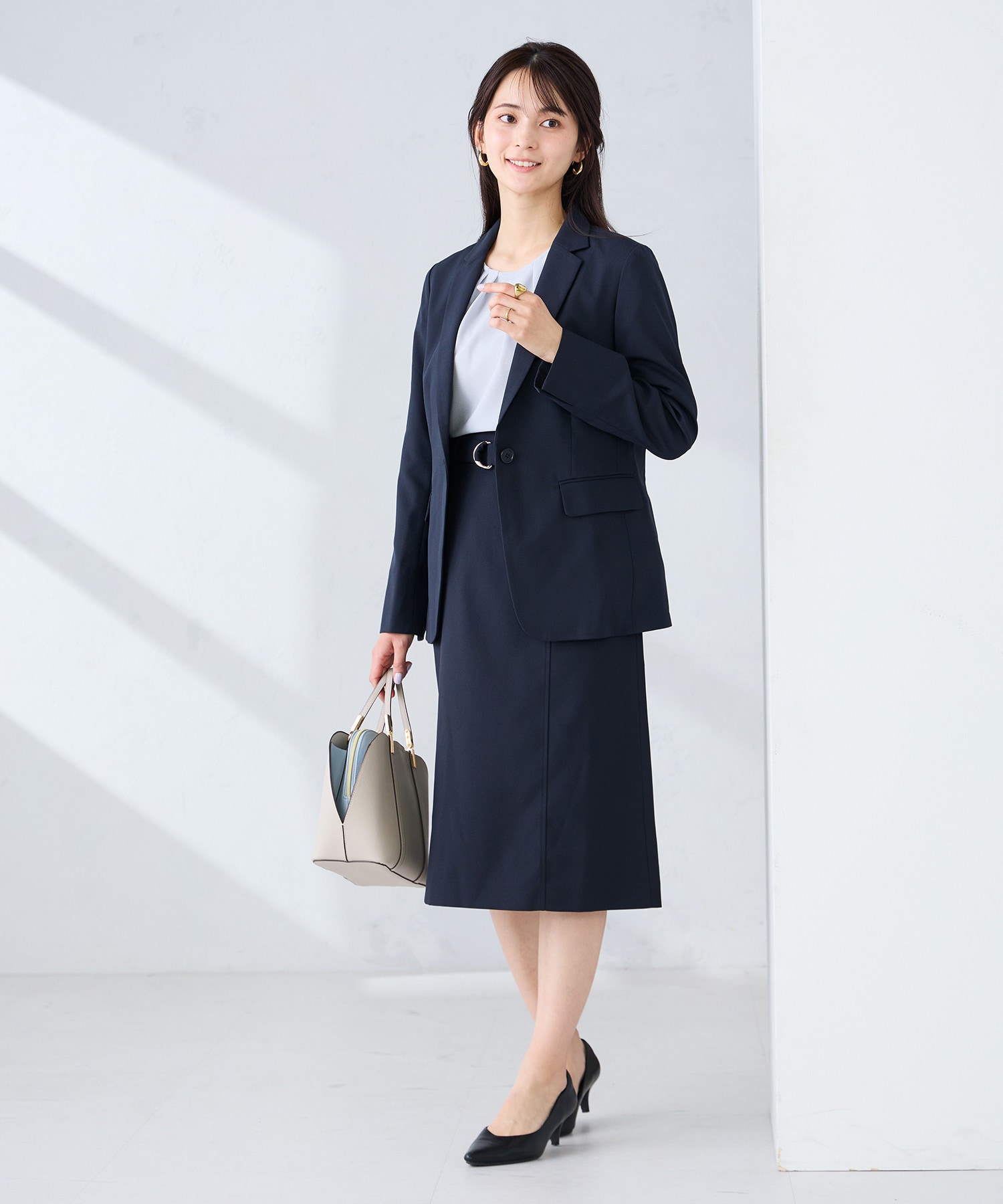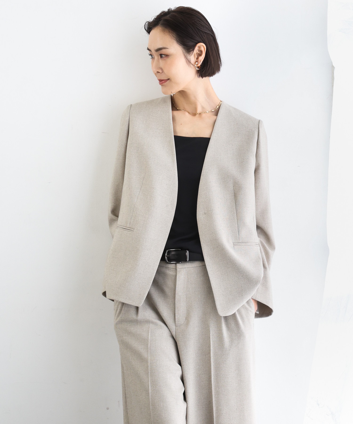 艶感カットソー×センタープレスパンツで、リラックス感と上品さを両立。接触冷感やUVカットなど機能素材で、汗ばむ季節も快適な着心地に。ショッピングなどの休日にも心地よく過ごせる、きれいめカジュアルな着こなしです。