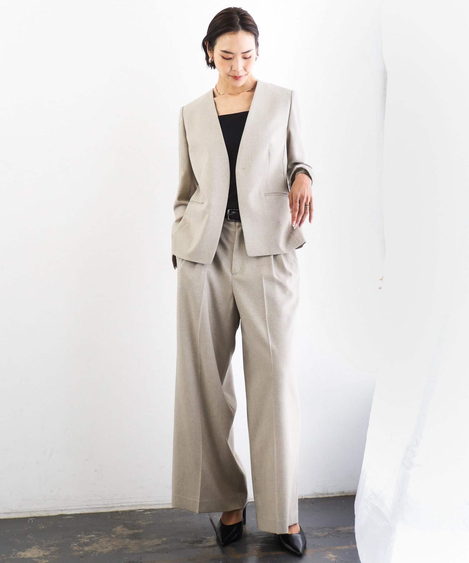 迷わず品よく決まるシフォンセットアップコーデ