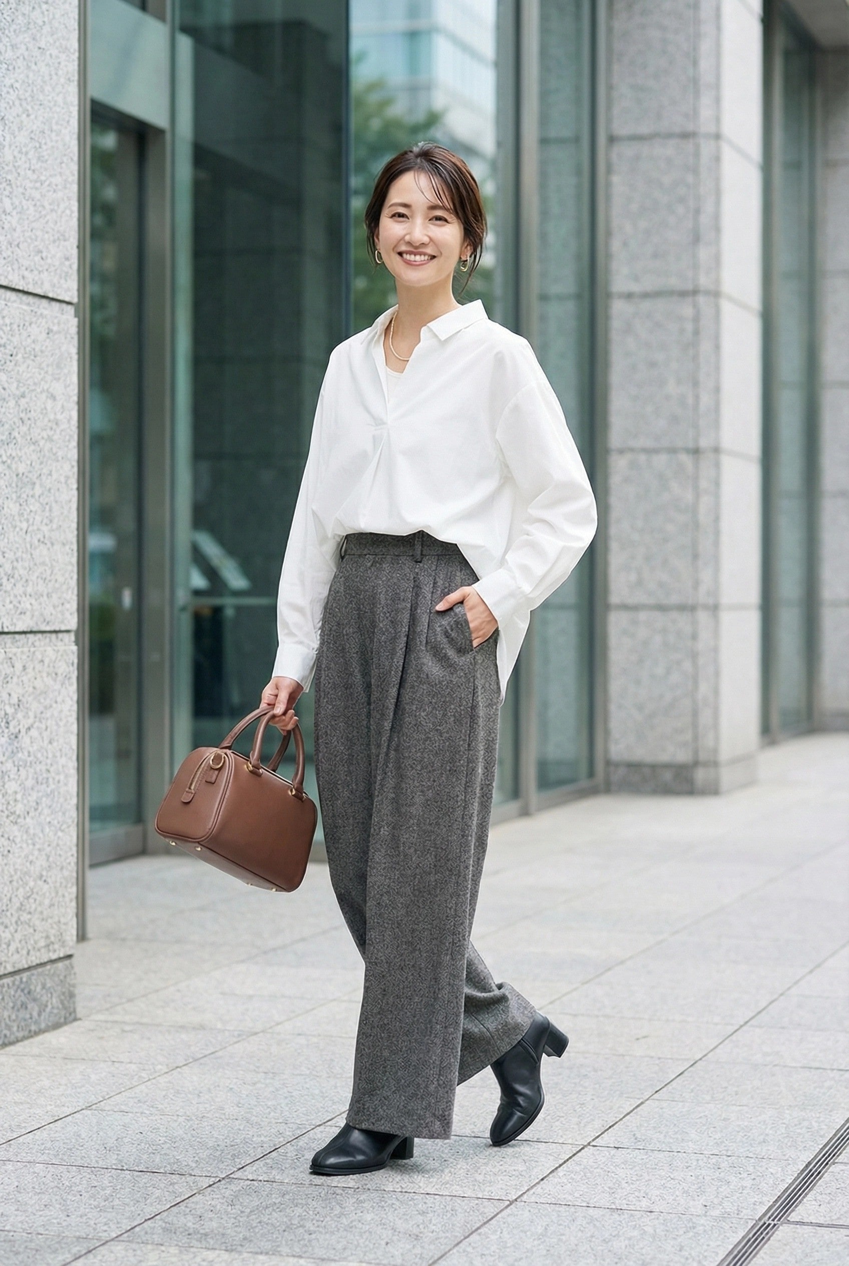 機能性抜群、ラクしてきれい見えが叶うワイドパンツコーデ